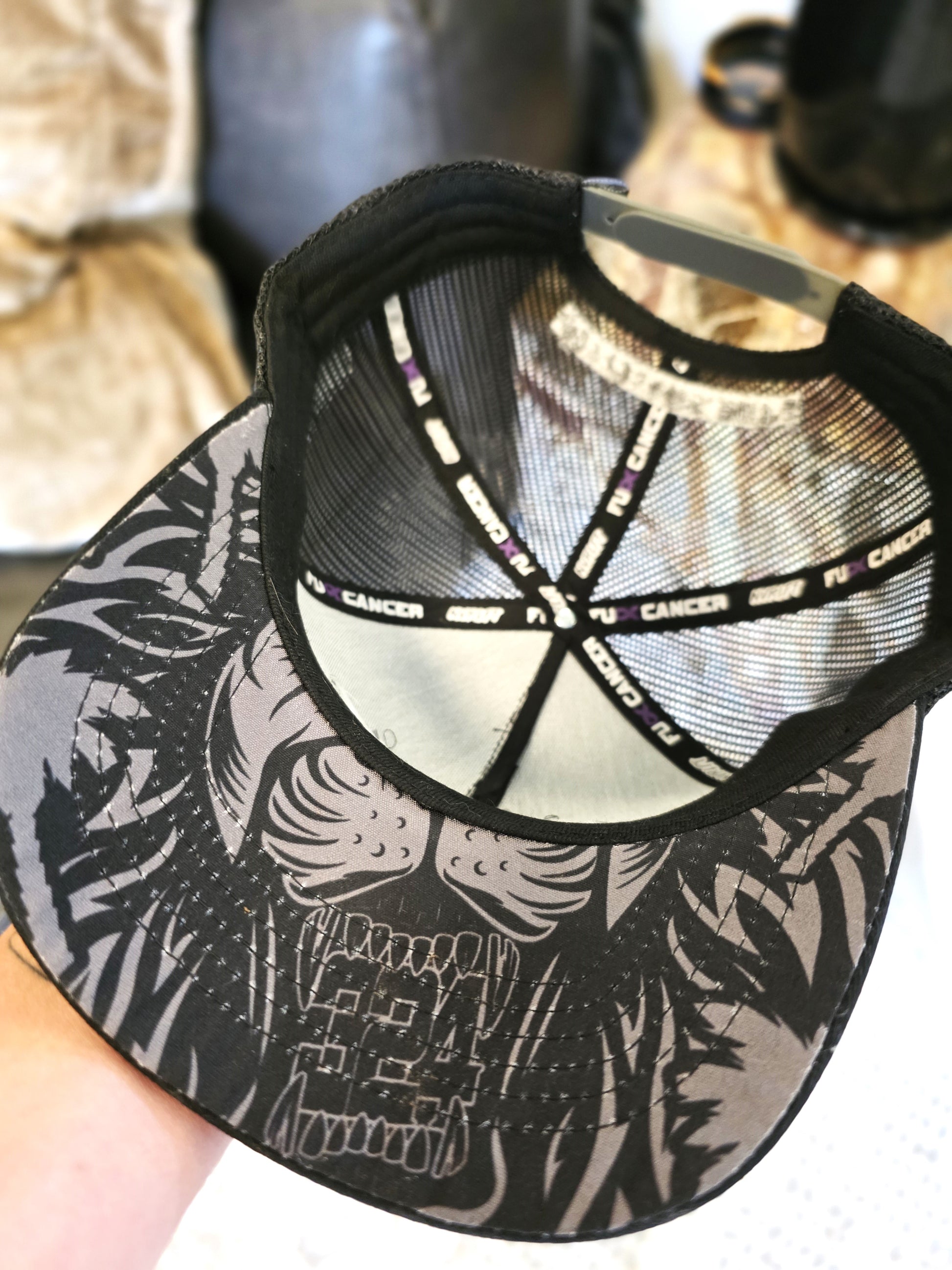 NVRLFT Lion print on underside of brim.